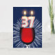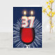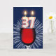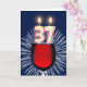 A birthday glass of wine with candles. The candles are made up of the number 37, for a 37th birthday. Fireworks are exploding in the background. A birthday card suitable for anybody, male or female.