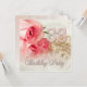 A beautiful delicate image of a rose in soft pink tones. In the background is a string of pearls. The whole effect is softened by a delicate feather. A delightful 38th birthday party invitation. Change the back to your own party details