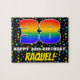 This upbeat and vibrant birthday jigsaw puzzle design features a large number “38” with a multicolored rainbow spectrum inspired gradient pattern, along with the message “HAPPY 38th BIRTHDAY,”, and a personalised recipient name. The background features a bold, colourful pattern featuring star shapes of various sizes. A fun, customisable birthday puzzle like this might be a fun way to send birthday wishes to somebody who is celebrating their thirty-eighth birthday. [~Z0000607]