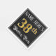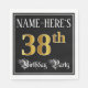 This luxurious and ornate birthday paper napkin design features a customizable name and the message “38th Birthday Party”. The large number “38th” has a faux/imitation gold-inspired coloring pattern, and the words “Birthday Party” are in elegant script-style text. The background is colored black by default (although it can be customized). Elegant, fancy paper napkins like this might be used at a birthday party/celebration being held in celebration of somebody’s 38th birthday. [~Z0000565]