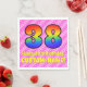 This happy and upbeat 38th birthday themed paper napkin design features a large number "38" having a colourful rainbow spectrum inspired gradient pattern. It also features the message "Happy 38th Birthday,", and a customisable name. The background features a cheerful pattern of dark pink and light pink stripes containing loving pink heart shapes. Birthday themed paper napkins like this might be fun to use at a celebration being held to honour somebody who is celebrating their thirty eighth birthday. [~Z0000417]