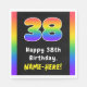 This upbeat and bold birthday paper napkin design features the number “38“ with a vibrant rainbow spectrum inspired gradient pattern, along with the message “Happy 38th Birthday,”, and a personalised recipient name. Paper napkins like these might be used at a party for somebody who is celebrating their 38th birthday. [~Z0000629]