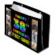 This eye-catching and fun birthday-themed gift bag design features the message “HAPPY 38TH BIRTHDAY,“ with a vibrant rainbow spectrum inspired gradient pattern, along with a personalised recipient name. To the left and the right of the rainbow-patterned message on the front are some photos that can be personalised, perhaps with photos of the recipient, the recipient’s family and friends, and/or the sender(s) of the gift. A birthday themed giftbag like this might be used when giving a present in celebration of somebody’s thirty-eighth birthday. (Photography © Storytree Studios, Stanford, CA.) [~Z0000668]