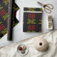 This geeky and fun birthday themed wrapping paper design features a large number "38" with a red seven segment digital display style look, along with the message "Happy 38th Birthday," and a custom name in nerdy retro style yellow text, on a black coloured background. Wrapping paper like this might be used when giving a gift or present in honour of somebody’s thirty eighth birthday. [~Z0000387]