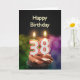 A birthday cup-cake with candles. The candles are made up of the number 38, for a 38th birthday. A birthday card suitable for everybody.