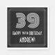 This 1920s/1930s style inspired birthday paper napkin design features a large Art Deco style inspired number "39", the message "HAPPY 39th BIRTHDAY,", a custom name, and a border pattern consisting of lines. Fun, personalised birthday themed paper napkins like this might be used at somebody’s 39th birthday celebration. [~Z0000395]