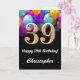 39th Birthday Black and Gold Colourful Balloons Card