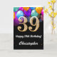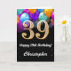 39th Birthday Black and Gold Colourful Balloons Birthday Card. For further customisation, please click the "Customise it" button and use our design tool to modify this template.