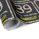 This floral, garden-inspired birthday wrapping paper design has the message “Happy 39th Birthday,” and a personalised recipient name. The large number “39” plus the border consist of flower icons. Wrapping paper like this might be used when wrapping gifts being given to somebody in celebration of their thirty-ninth birthday. [~Z0000651]