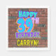 This fun birthday paper napkin design features the message “HAPPY 39TH BIRTHDAY,” having a vibrant, colourful, urban street art and graffiti inspired appearance, along with a personalised recipient name. The background features a pattern inspired by the look of a brick wall. Fun, vibrant, personalised birthday themed paper napkins like this might be used at a birthday party in celebration of somebody’s thirty ninth birthday. [~Z0000534]