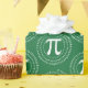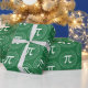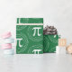 These green and white Pi Day gift wrapping paper features a 3.14 spiral Pi number and a Pi symbol pattern. The background colour is easy to customise inside the design tool.
