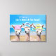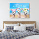 A Photo of 3 Cute Alpacas In Sun Hats at the beach with the message, "Life Is Better At The Beach!". Or, Personalise this Canvas Art with your Name or your favourite quote. Makes a great gift item for family or friend. White script lettering.
