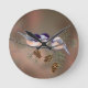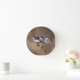 3 CHICKADEES & PINE CONES by SHARON SHARPE Round Clock