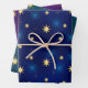 3 Coordinating Star Blue Purple Teal Holiday Wrapping Paper Sheet