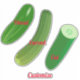 Funny graphic of various cucumbers, one whole and uncut, one curved and one cut on one end to customise with your own greeting, name, message, etc
