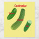 Funny graphic of various cucumbers, one whole and uncut, one curved and one cut on one end to customise with your own greeting, name, message, etc