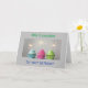 This card is great fun and good quality. I loved the humour inside and on the back. There is the opportunity to change the orientation of this card from landscape to portrait, which I did. It is relatively straightforward to amend the typeface to fit the new orientation. It was well packaged with no plastic. The printing on this card is excellent.
