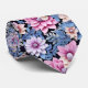 A Colourful Mens Necktie Designed With Purple, Pink and Peach 3 D Florals With Blue Leaves for Formal Or Business Attire