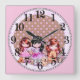3 Dolls and Dogs Square Wall Clock