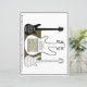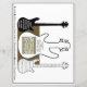 The right side guitar flap says, "HAPPY BIRTHDAY TO THE MAN WHO PLUCKS MY HEART STRINGS", white on black background. Taupe mousse chocolate brown area holding the guitars together as a base block colour. Use an A7 envelope, or 5.25" x 7 25" size, to send and give.