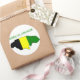 3 inch round "Born in Jamaica" Black, green and yellow on map of Jamaica.
