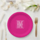 3 Initials Monogram | White On Hot Pink Paper Plate