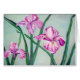 3 pink/purple irises on soft green background from an original acrylic painting by Kristy McAdams