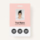Easily personalise this pastel blush pink Custom Employee Name Badge with Photo, Scan Bar Code and 3 Multiple business logos. You can upload 3 different company logos, perfect for partnerships and sponsors. A simple business design in girly light pink and white colours fully customisable in front and back sizes, sans-serif basic and modern fonts and a professional and clear look. Avaiable with lanyard, metal clip or with retractable. No minimum order.