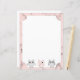 Pink 3 Owls Marble design bordered writing paper. Features three fun gray and pink owls with a pink marble design border. Back has one pink marble owl in the middle of the page.