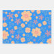 3 Pack Colourful Retro Floral Pattern Wrapping Paper Sheets. Vintage, cute and playful orange colour floral pattern. Mix and match of yellow, bright blue and red background colours. So cheerful, modern and summery!