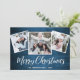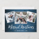 3 PHOTO Christmas Rustic Blue Wood Greeting Holiday Card