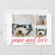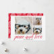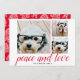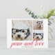 3 Photo Christmas Script Red Damask Peace Love Holiday Card
