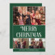 3 Photo Collage Green and White Merry Christmas Holiday Card