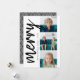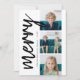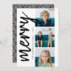 3 Photo Collage Minimal Be Merry black white Holiday Card