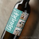 3 Photo Collage - Modern Thank You with Name blue Wine Label