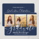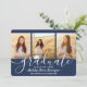 3 Photo Collage Navy Blue & White Graduation Party Invitation