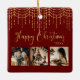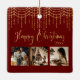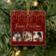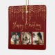 “Happy Christmas” in beautiful faux gold script on a red background. Replace photos with 3 of your personal favourite photos. Gold faux string lights/ lanterns hanging down. Change the year and what a beautiful ornament. Elegant. So simple, yet chic.