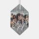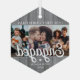 Celebrate the joyful 1st holiday of your engagement with a custom 3 photo collage "Our First Christmas Engaged" grey faux wood hexagon-shaped glass ornament. All wording and images on this template are simple to personalize. (IMAGE PLACEMENT TIP: An easy way to center a photo exactly how you want is to crop it before uploading to the Zazzle website.) As an idea, the script typography can read "Together" or "Married." The modern farmhouse style design features rustic gray faux wood, stylish calligraphy, the couple's names & year, and three pictures of your choice. This unique wedding keepsake adds an elegant touch to Xmas home decorations.