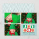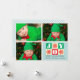 © 2014 Socialite Designs. Our "joy" text and snowflakes, in colourful squares, adds a splash of festive colour to this 3-photo holiday photo card. The back has blue and white chevron with a ribbon to add the year. Just replace our template photos and text with your own.