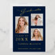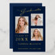 3 Photo Modern Script Navy Blue Grad Announcement