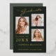 Beautifully elegant 3 photo graduation announcement cards. Featuring modern text with calligraphy script in your choice of gold, silver or rose foil. The design is complimented with a stylish dark sage green background on the front with a light sage green colour on the back. The back of the card offers a personalised announcement text space for that special graduate. To see more items like this, visit my store here at "www.Zazzle.com/LakeViewCardCo". Thanks