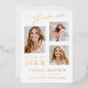 3 Photo Modern Script White Gold Grad Announcement