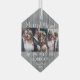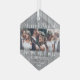 Celebrate a joyful 1st holiday as newlyweds with a custom 3 photo collage "Merry & Married" faux grey wood hexagon-shaped glass ornament. Pictures and wording on this template are simple to personalise. (IMAGE PLACEMENT TIP: An easy way to centre a photo exactly how you want is to crop it before uploading to the Zazzle website.) The modern farmhouse style design features rustic grey faux wood, handwritten style script calligraphy, elegant typography names & year, and three pictures of your choice. This unique wedding keepsake adds a stylish touch to the newlywed couple's Xmas home decorations. Merry Christmas & Congratulations to the new Mr. & Mrs.!
