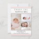 Simple, classy and elegant three photo pink, white and grey with black text baby shower and announcement combination "Thank You" design with message on back.