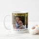 Upload 3 favourite photos to create a unique holiday coffee mug to give as memorable gift.The gold glitter background adds a special touch to your gift mug. Makes a great gift for Christmas and special occasions for family and friends. Personalise with your message.