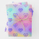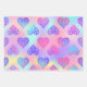 3 Pink Boho Heart Coordinating Gift Wrapping Paper Sheets