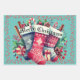 Beautiful 3 different scenes Christmas wrapping paper Santa i believe, Christmas stockings, and the third elfs