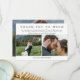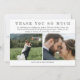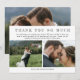 Wedding thank you card you can personalise with three of your own romantic wedding photos, two on one side and one large horizontal photo on the other. Thank you so much is written in a trendy sketched font. Add your names and a personal thank you note (or delete it to write something by hand).