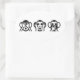 The three monkeys are Mizaru, covering his eyes, who sees no evil; Kikazaru, covering his ears, who hears no evil; and Iwazaru, covering his mouth, who speaks no evil.