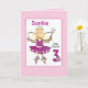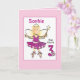 3 Year Old Cute Ballerina Cartoon Pink Birthday Card